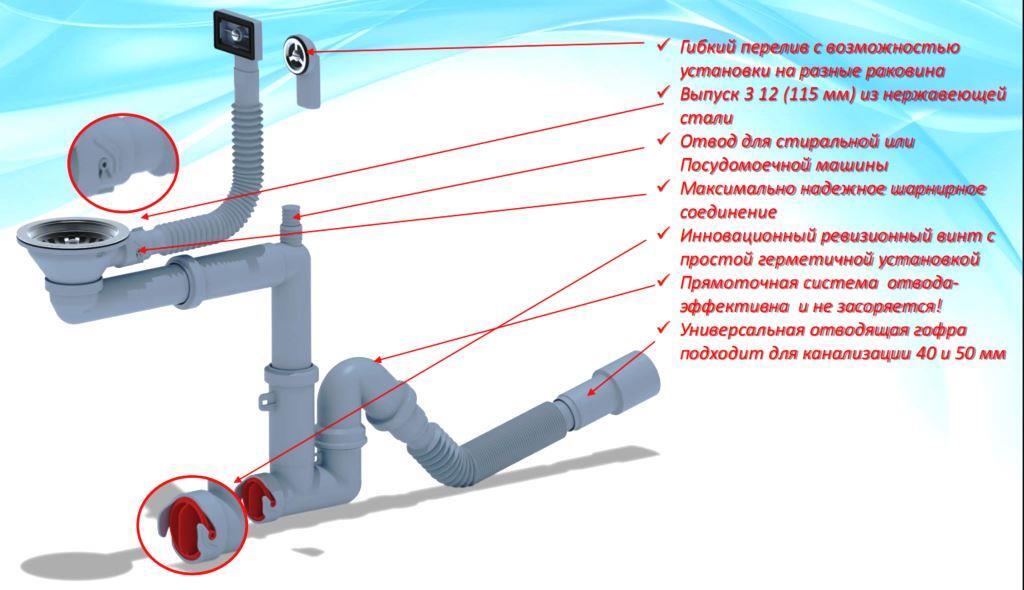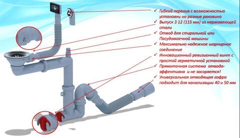 F5345SА15 АНИ Сифон 31/2*40 смещен с отводом для с/м и гофротрубой(10)