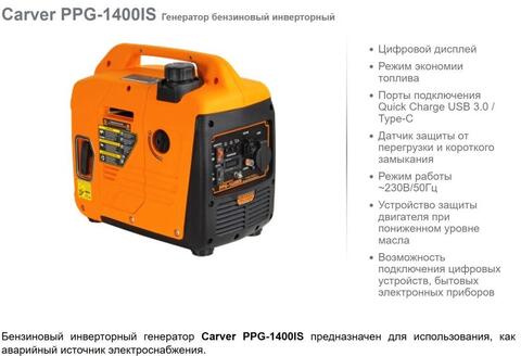 Генератор бензиновый инверторный Carvet PPG-1400IS(1.2квт)
