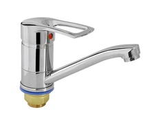 Смеситель для мойки и умывальника однорукояточный локтевой центральный набортный, излив с аэратором |